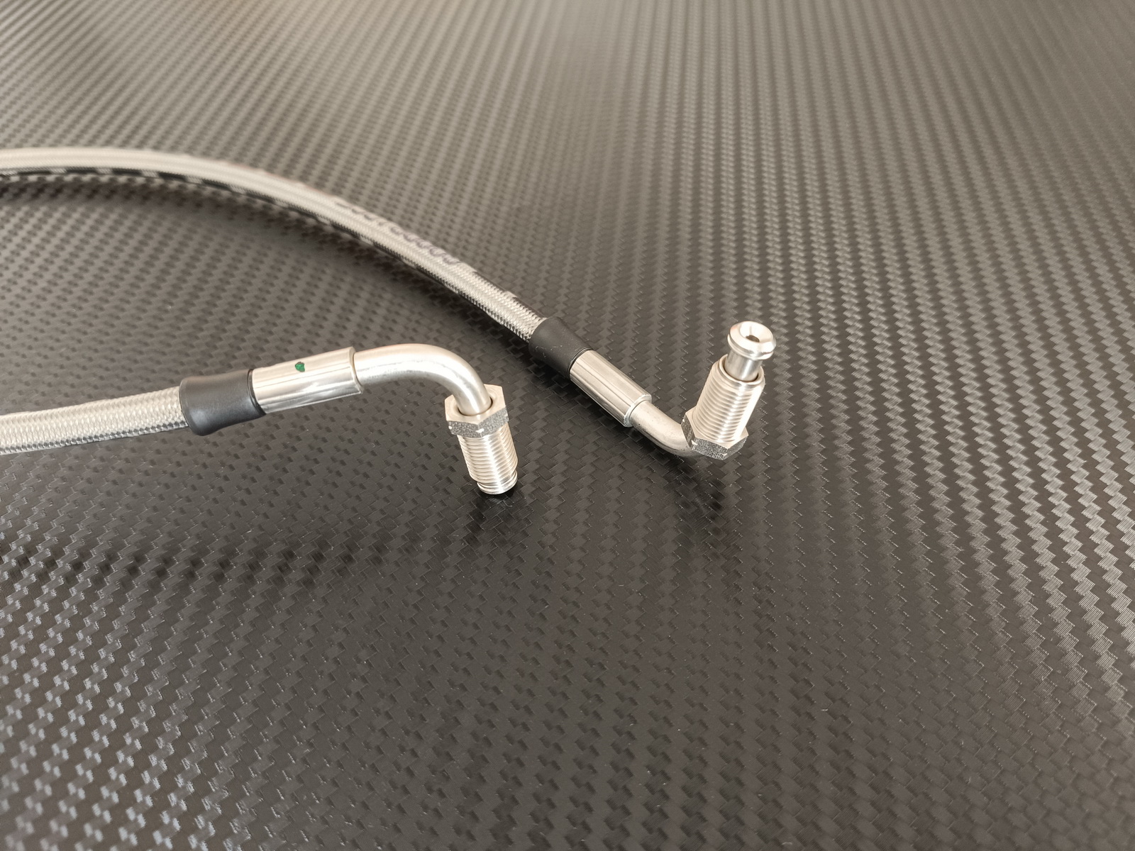 Raccords sertis acier filetage M10x100, tuyau téflon tressé inox.